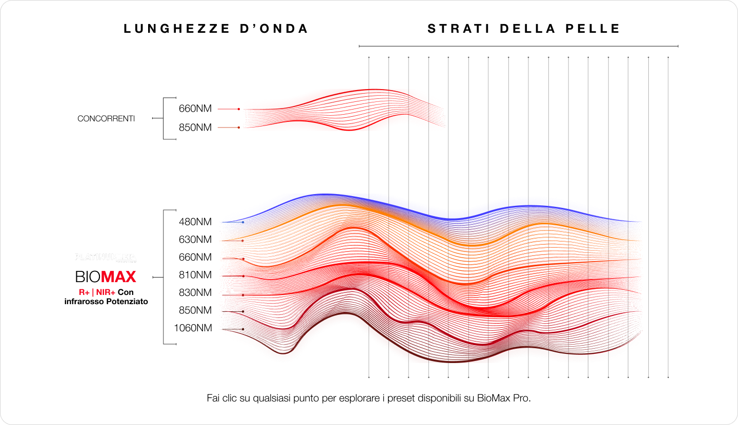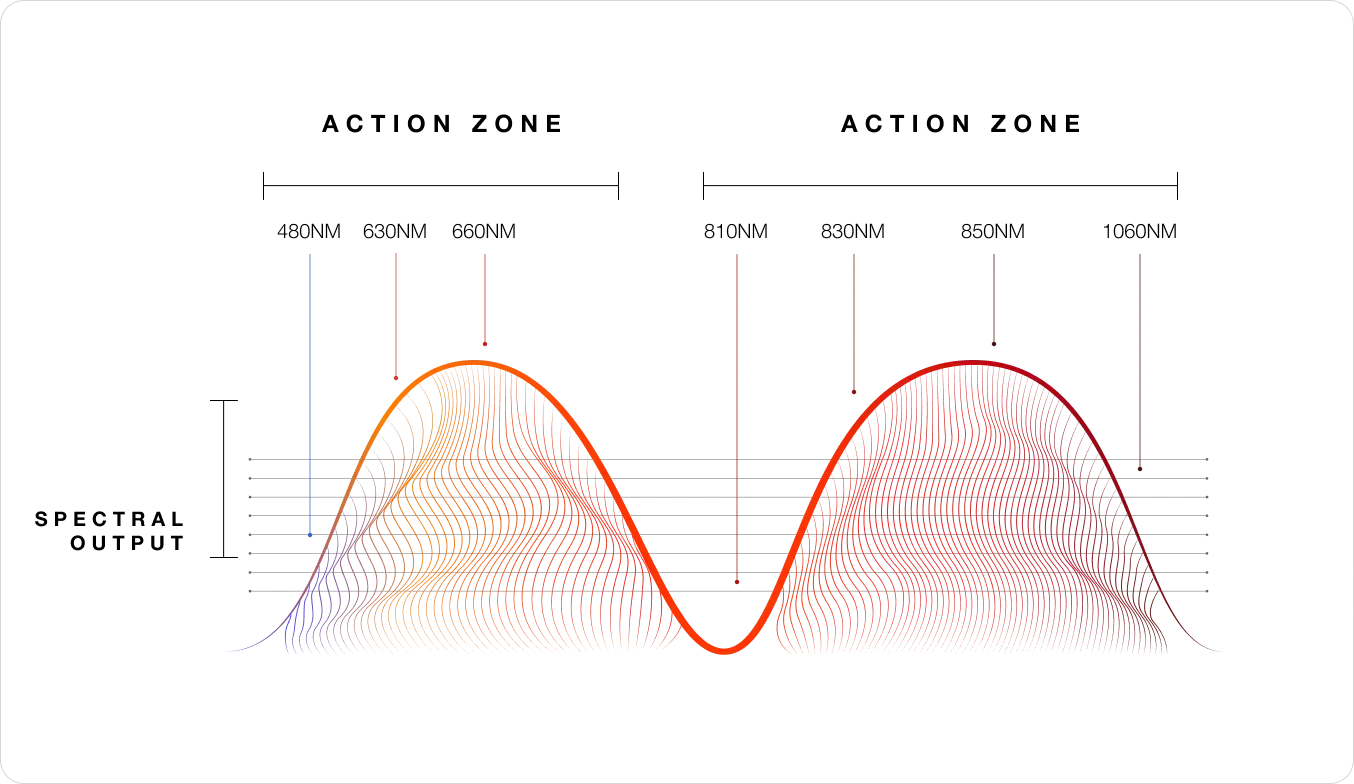 Ottieni il 50% di energia luminosa in più e la libertà di controllare le sessioni con precisione millimetrica. Regola ogni lunghezza d'onda o utilizza una delle sei modalità integrate, senza bisogno di imparare nulla.